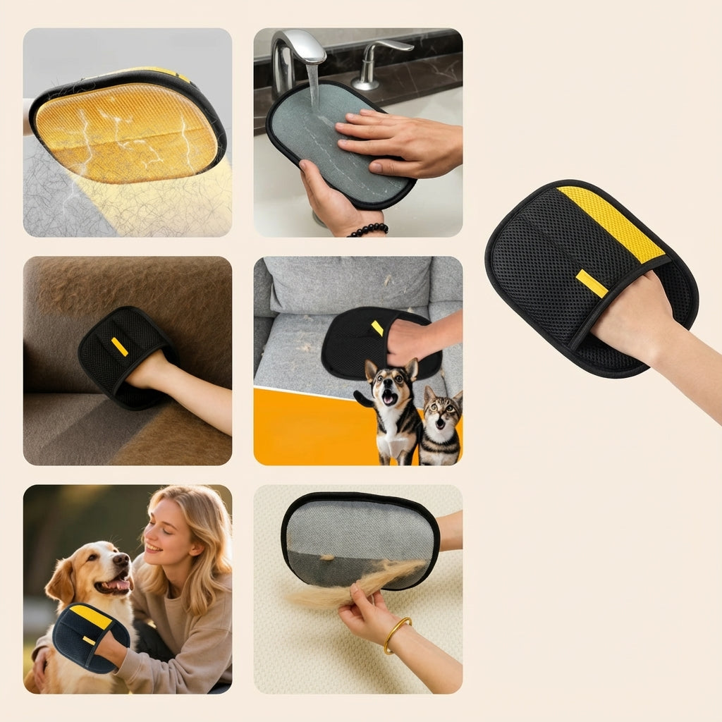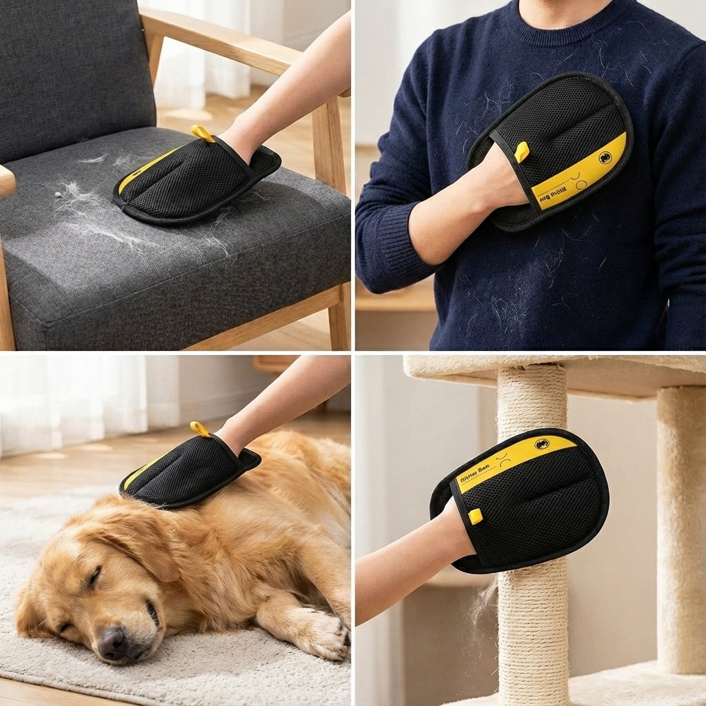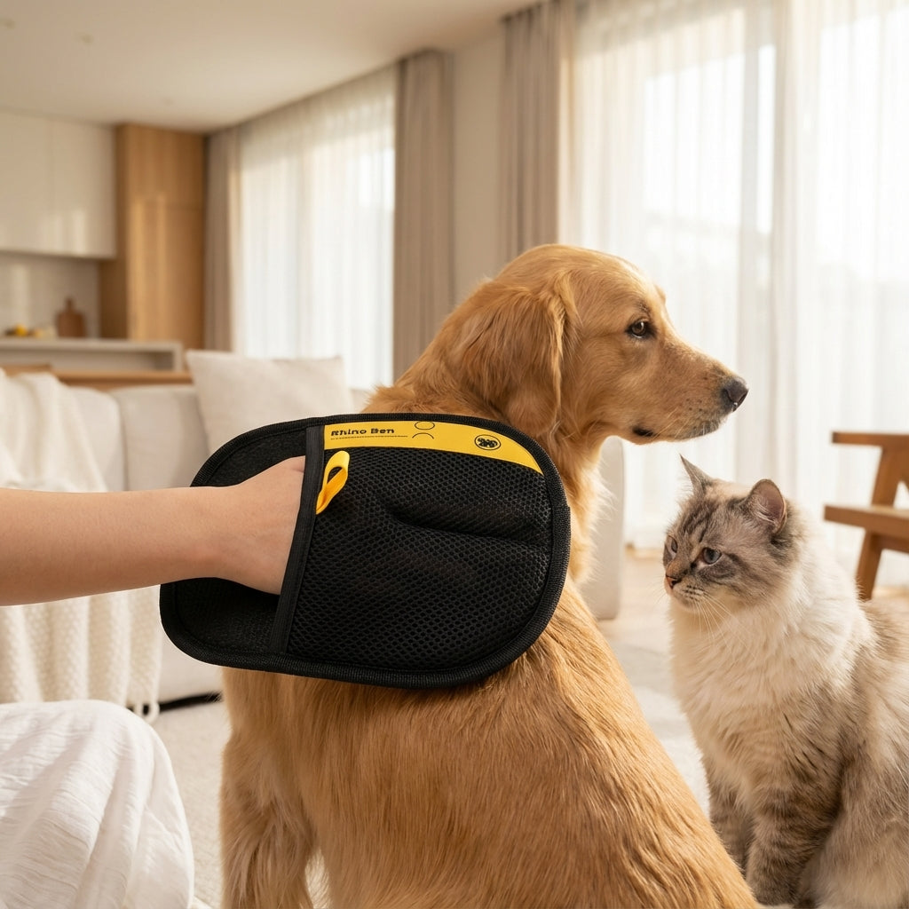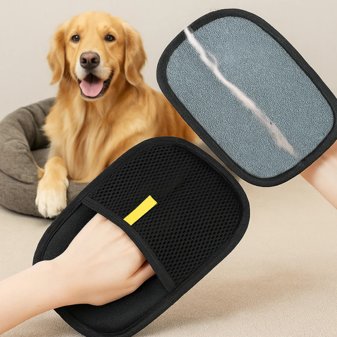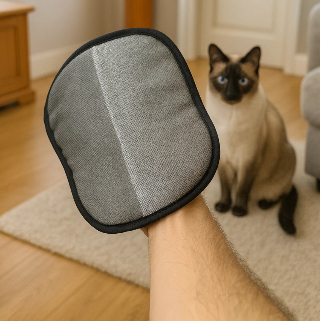 Our electrostatic grooming glove removes loose hair in seconds — gently and effortlessly.