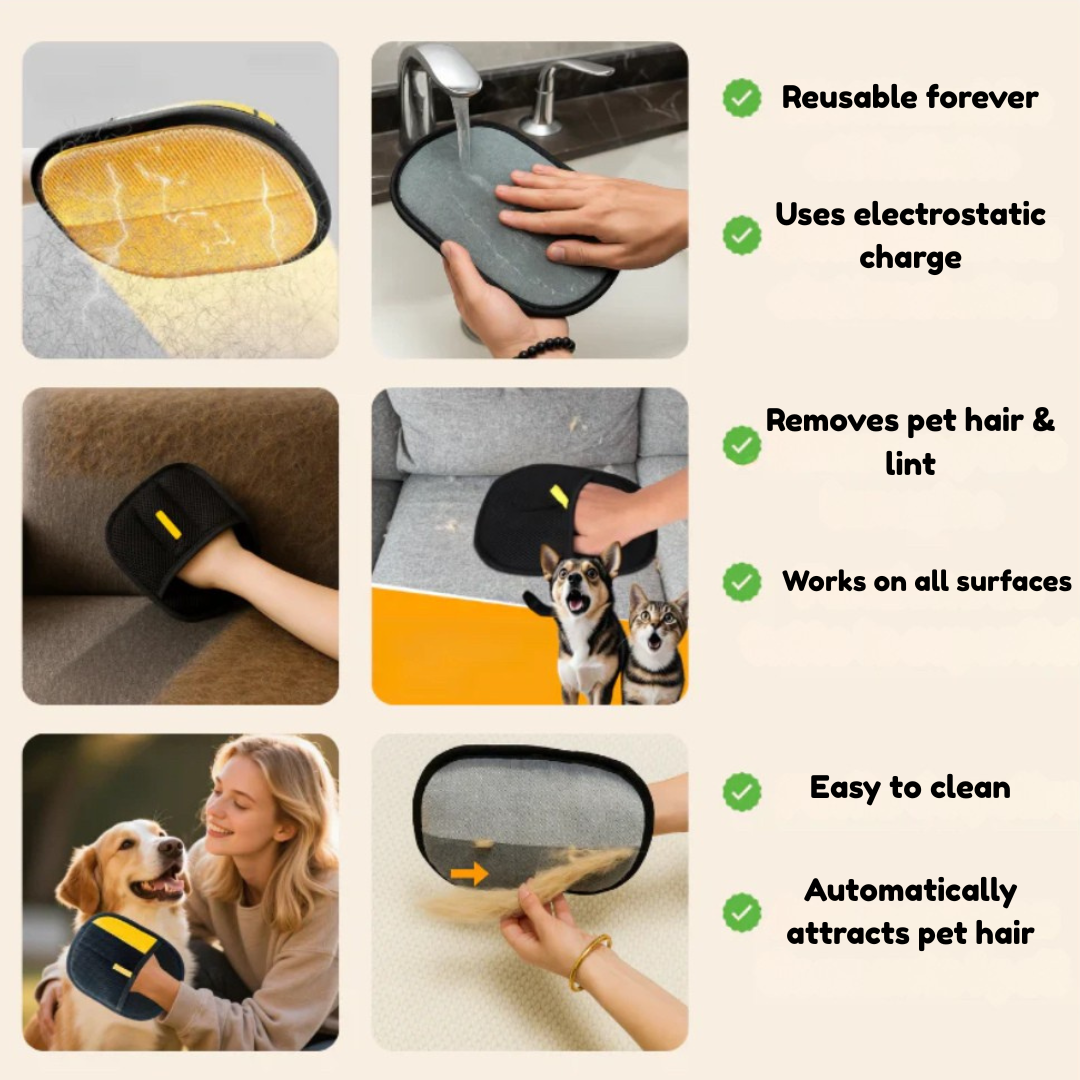 Thanks to its built-in electrostatic technology, the glove captures pet hair and fur in a single swipe, leaving no residue behind.